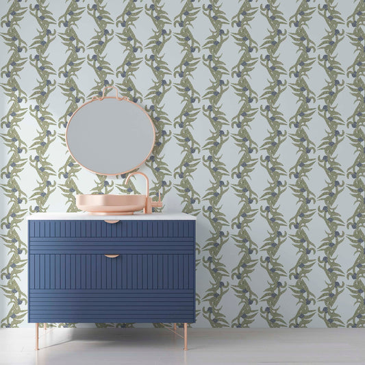 Botanical Wallpaper with Stripes – Lorelle – Dusty Blue