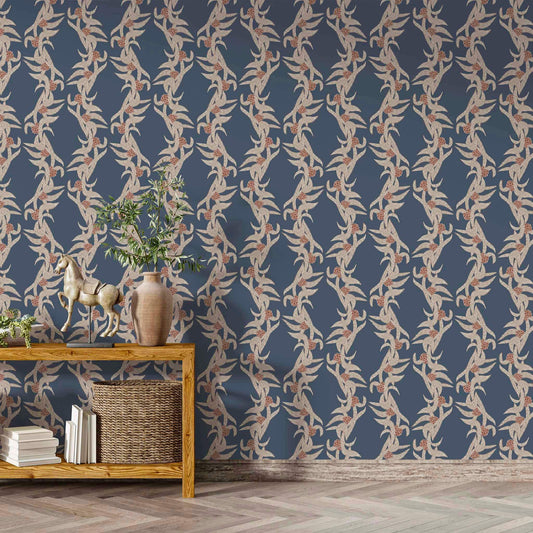 Bohemian Wallpaper with Stripe - Aurelia - Large Stripe in Lapis