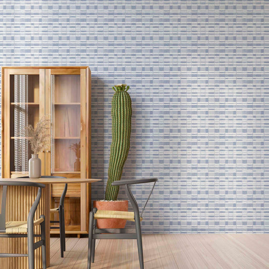 Checker Wallpaper with Horizontal Stripe – Peyton – Sky Blue