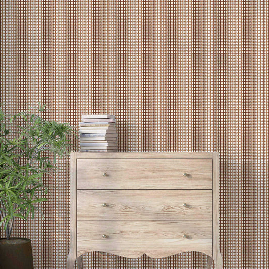 Checker Wallpaper with Horizontal Stripe – Peyton – Taupe Brown