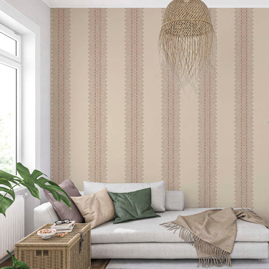 Bohemian Wallpaper with Stripe - Aurelia - Large Stripe in Plaster