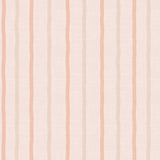 Blush and White Pinstriped Wallpaper with Linen Finish - Arno