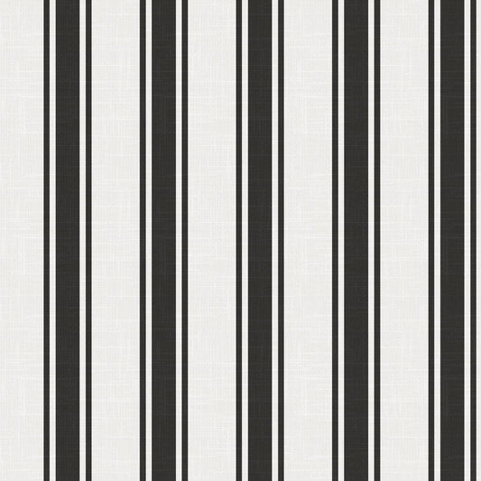 White and Black Preppy Striped Wallpaper with Linen Finish - La Solana