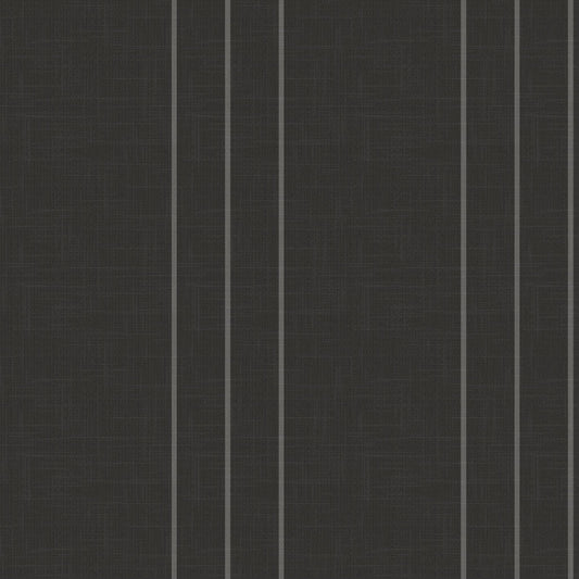 Black and Grey Pinstripe Wallpaper with Linen Finish - Arno