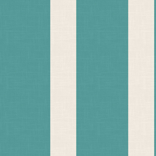 Aqua and White Striped Wallpaper with Linen Finish - Marquette